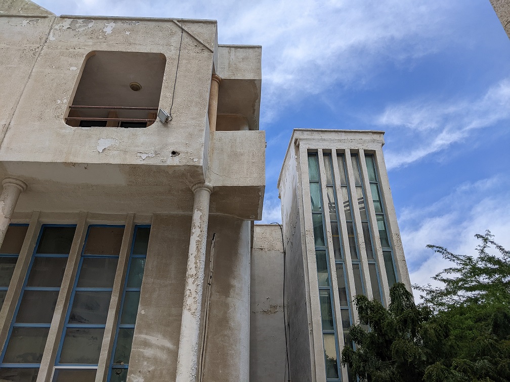 با توجه به نیاز احداث و توسعه دانشگاه کیش که در غرب میدان امیر کبیر بصورت ساختمان مرکزی و چهار بال ساخته شده بود ولی فقط یک بال به دانشگاه اختصاص یافته بود و یک بال در اختیار مدیریت فنی سازمان و دو بال دیگر نیز بعنوان مدرسه پسرانه در اختیار آموزش پرورش کیش بود . با احداث چندین مدرسه در شهرک های صدف و سفین و تکمیل ساختمان معاونت اجرایی سازمان کل مجموعه با انجام عملیات بازسازی کلی و همچنین تکمیل سالن آمفی تأتر برای برگزاری جلسات و سمینار ها به دانشگاه کیش واگذار گردید که هم اکنون در آن مستقر نی باشد . سالن همایش دارای اتاق استراحت مقامات و اتاق صدا و فیلم برداری و نمایش فیلم می باشد که در حال حاضر مورد بهره برداری دانشگاه قرار دارد.